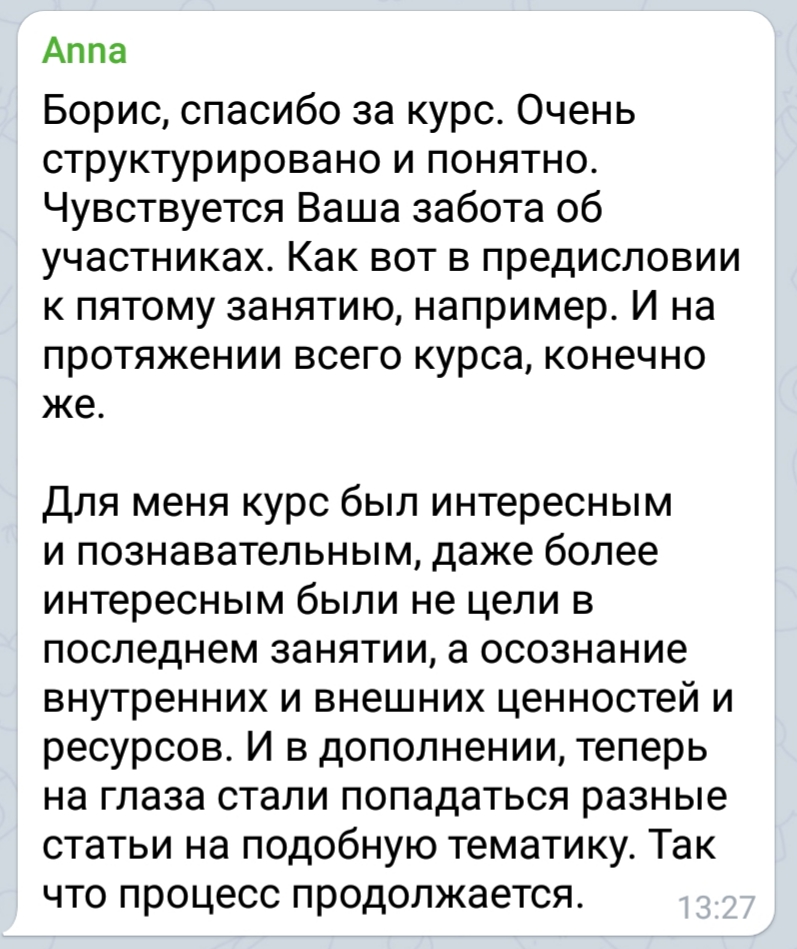 Индивидуальная консультация Бориса (50 мин.) по следам курса в течение 2 месяцев от начала курса