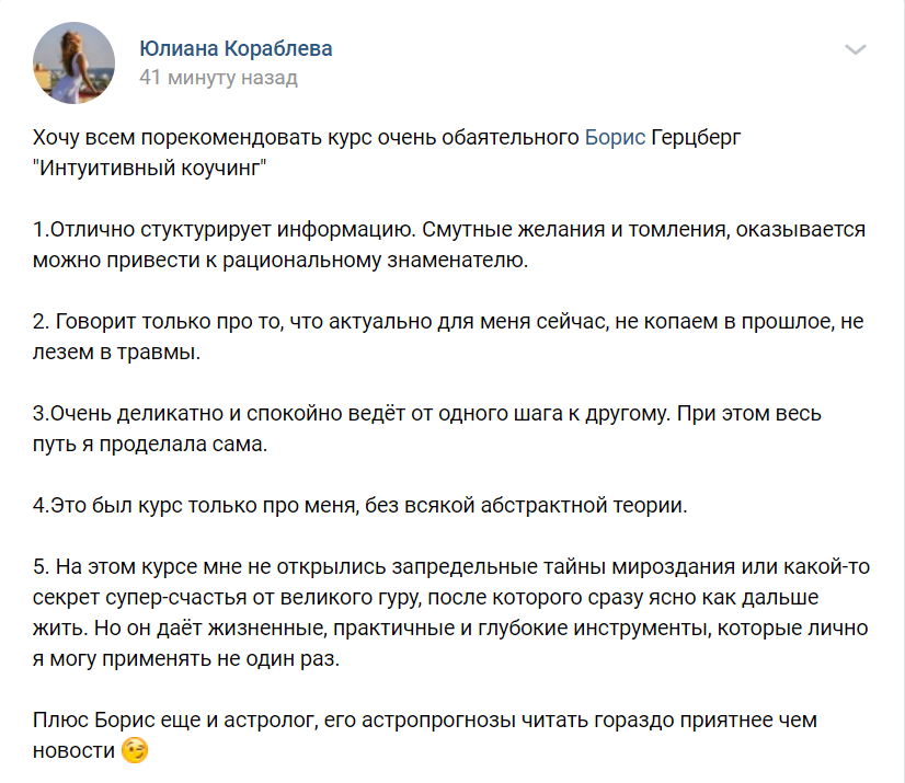 Личная консультация с Борисом Герцбергом в конце курса, длительностью 60 мин